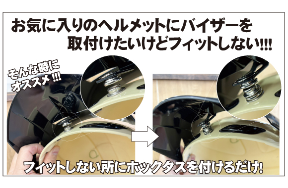 ヘルメットの3つボタンに取り付けバイザーの取付を補助し操作性を向上させる優れもの!